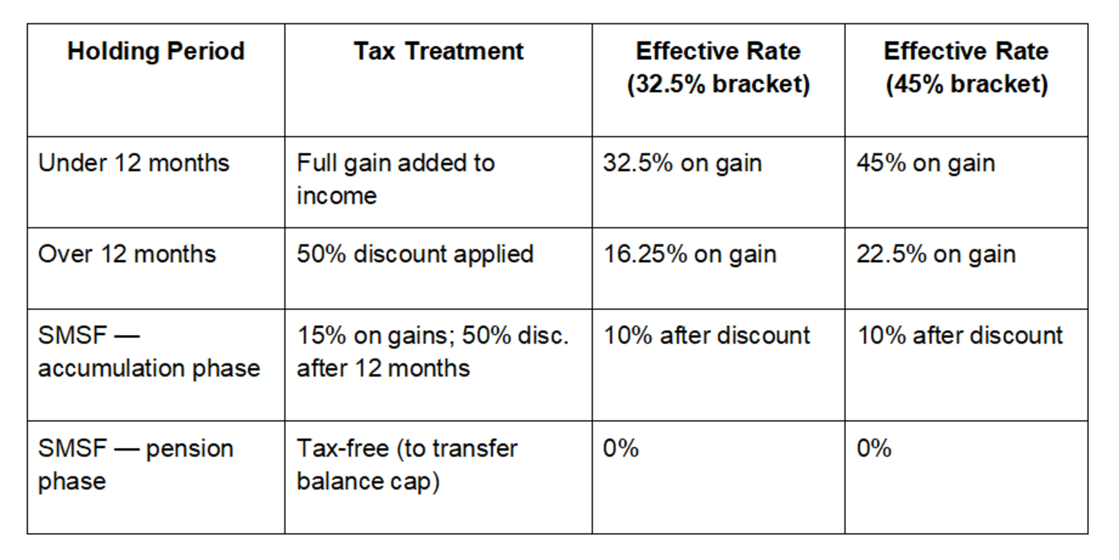 on the net capital gain. This is one of the most powerful tax advantages available to Australian crypto investors, and the primary reason why long-term holding strategies are so compelling from a tax perspective.